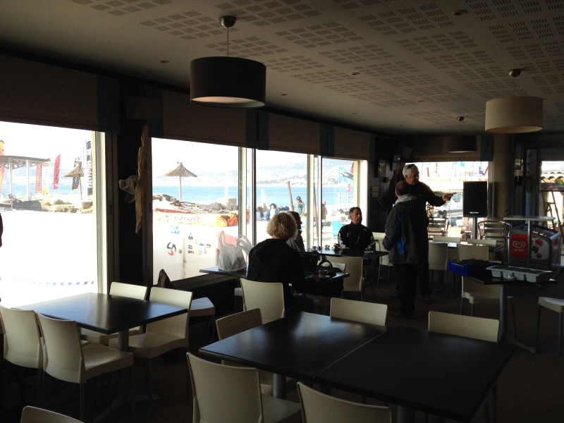8h30 ce samedi matin, le parking se remplit des coureurs, le vent est pour le moment absent mais il est abonné fraîchissant tout au long de la journée... En attendant c'est l'heure du café au Neptune Club !