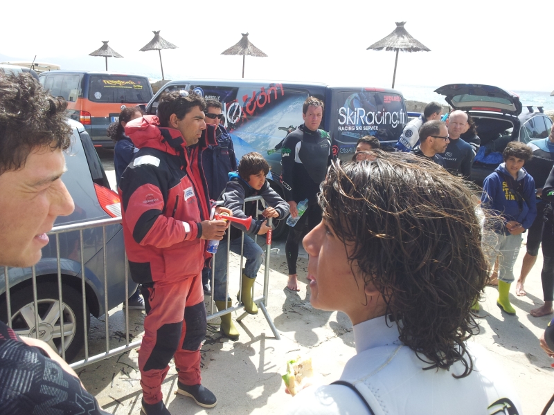 Avec la houle l'impression de vent fort a fait que de nombreux coureurs sont partis avec du matos un tout petit peu trop petit. Le directeur de course décide donc de mettre un terme à cette première manche du jour après 20 minutes... Mathieu Bonno avait pris pas mal d'avance après avoir repris Fabien Courtiade qui avançait plus vite que lui mais qui perdait en relance au gybe. Tout le monde prépare donc du matériel plus gros et les batailles vont faire rage avec un nombre de virages très important en une heure de course !