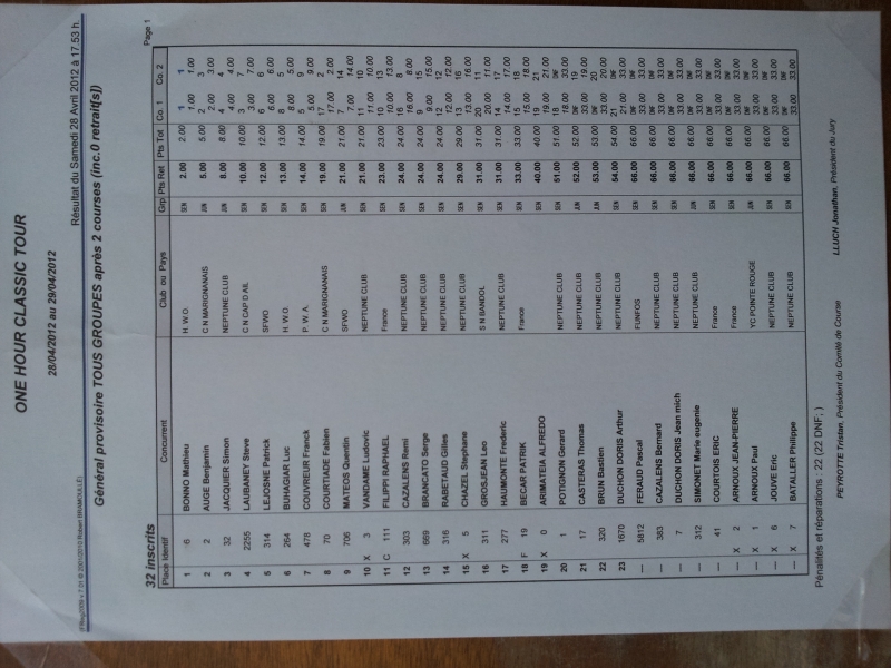ClassementLe classement du jour. Peu d 'inscrits mais une ambiance et une orga fort sympathiques !