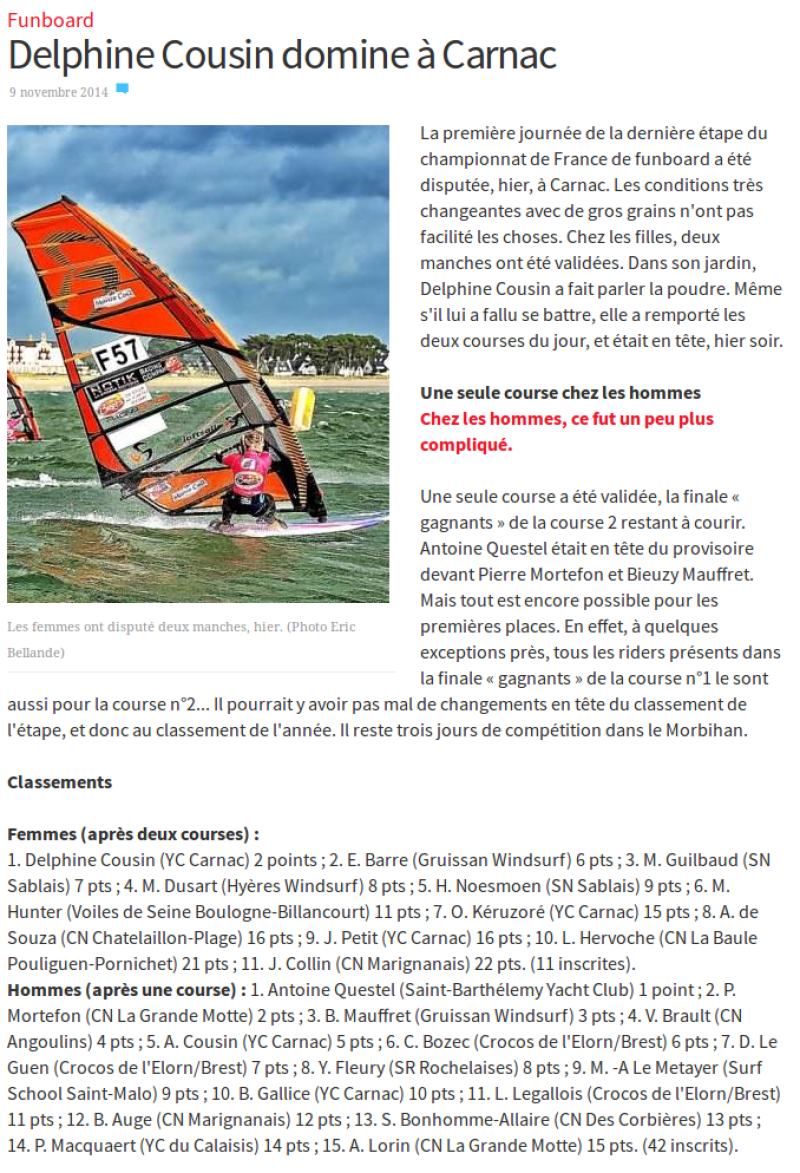 Championnat de France Promotion Funboard Slalom 2014 " CARNAC, AFF Carnac - Jour 2