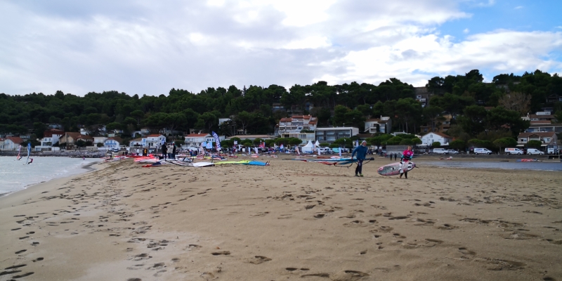Le PaddockQuelle belle plage, ici, à la Franqui ! Les coureurs ont la place pour mettre leur matériel et rejoindre la zone de départ en un bord